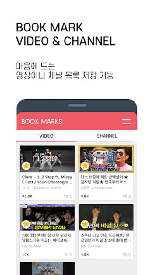 You can quickly move and watch videos or channels you like by bookmarking them.