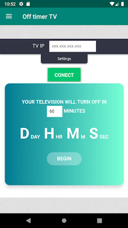 Enter the IP of your LG television (only the first time). Next you will have to insert how many minutes you want your LG television to be on.