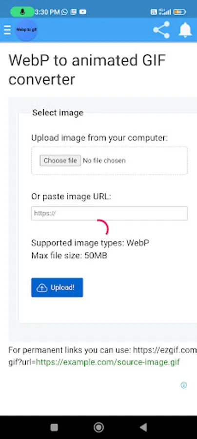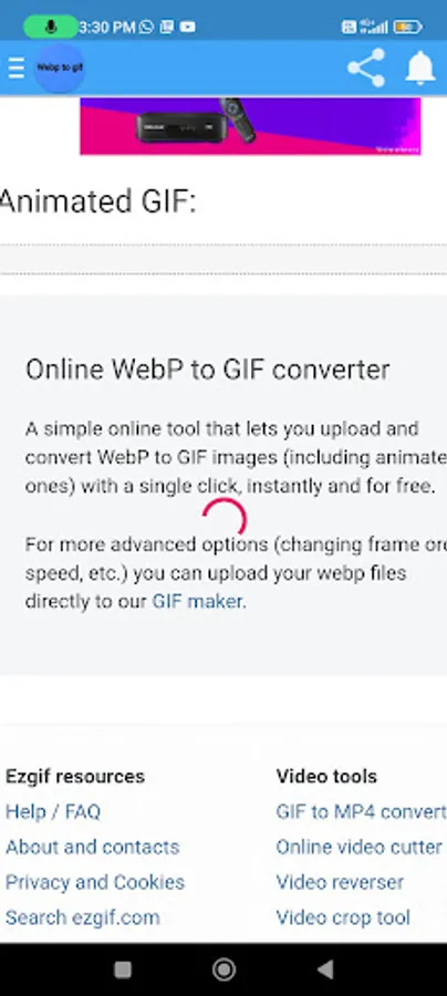 For more advanced options (changing frame order, speed, etc.) you can upload your webp files directly to our GIF maker.