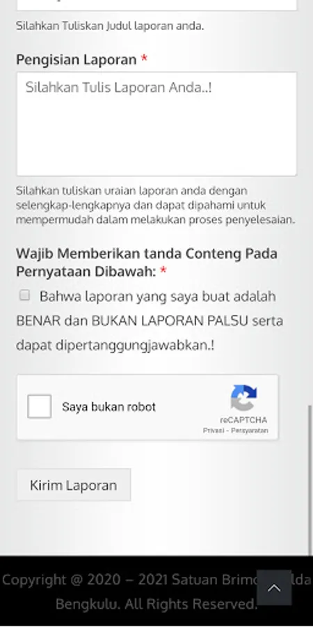 The Brimob Provos Report Application was made as a facility for the Public Complaint Report Page to the Bengkulu Provincial Police Mobile Brigade Unit Regarding Violations or Indiscipline of Bengkulu Police Mobile Brigade Unit Personnel inside and outside the official.
