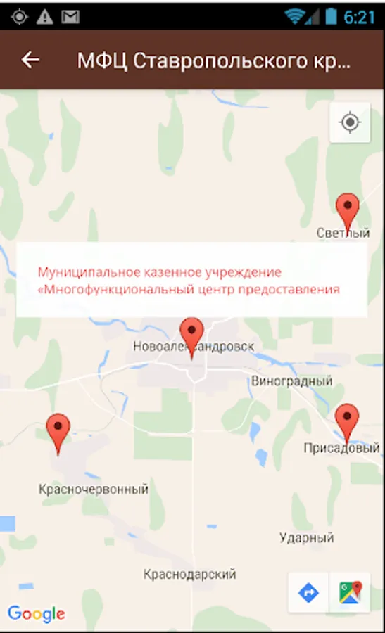 Appendix. "MFC Stavropol region" functionally based on the Android platform, you can view information about any multifunctional center of Stavropol Territory: the address, working hours, location on the map. Information available in the main offices as well as on items remotely dostupa.Takzhe in this application, you can view news network MFC Stavropol Territory. The application allows you to evaluate the quality of services rendered to inscribe in the provisional place.