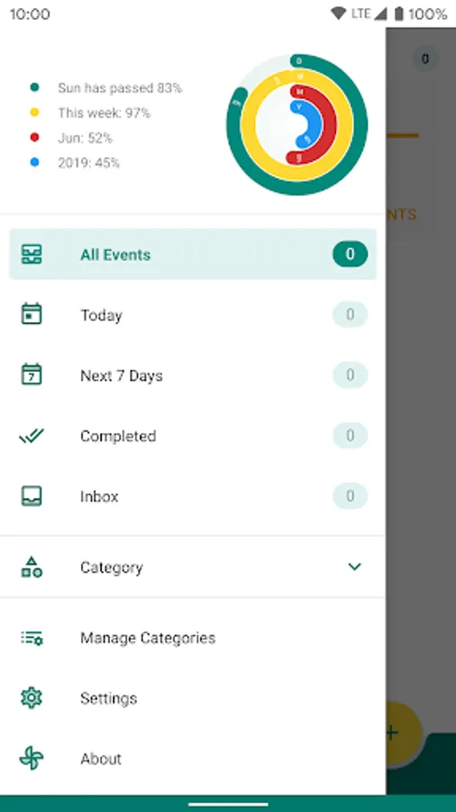 4 status (onging/gone/wait/done), countdown and progress help you to figure out the status of current events.