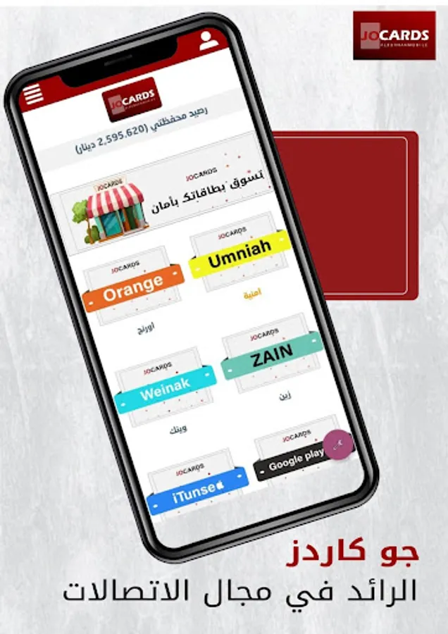 Welcome to the application of JoCards. This application is an extension of Al Burhan Foundation for mobile devices that provide high quality and contemporary services through a team working with the highest standards of digital and electronic technology.