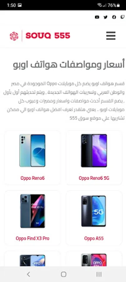 Souq 555 Android application provides you with the easiest and fastest way to find the latest prices and specifications of mobiles with comprehensive reviews of features and defects and the latest technical news