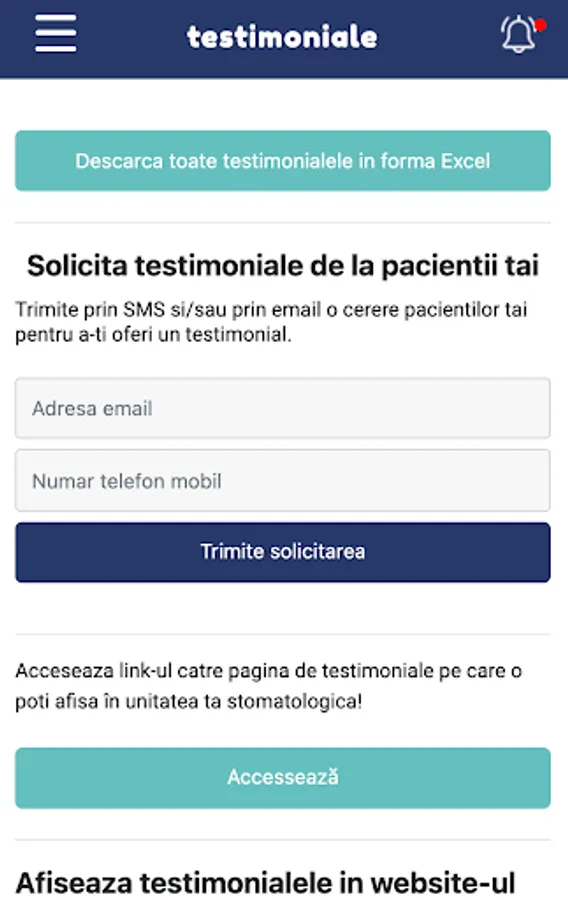 Request a testimonial, manage testimonials, analyze profile performance, view scheduling requests, and modify your dental unit data directly from the Oladent Manager application.