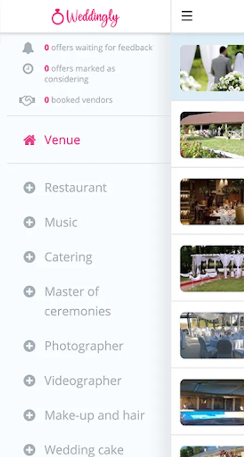 - Freedom: If Weddingly didn't find suitable vendors for you or your needs changed, there is no obligation to book any vendors.