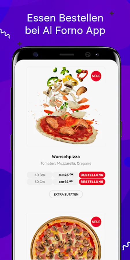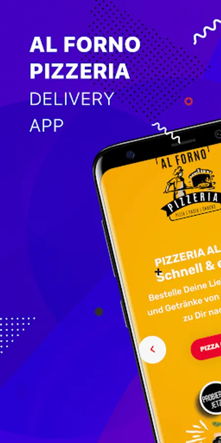 At Al Forno you will find a large selection of pizza, pasta, salads & more. All products are not only freshly prepared by us, but also with the best ingredients. Whether a small salad or pizza - delivery is reliable and fast! Ordering with your mobile phone and our new Al Forno app is now child's play! Simply enter your address and off you go!