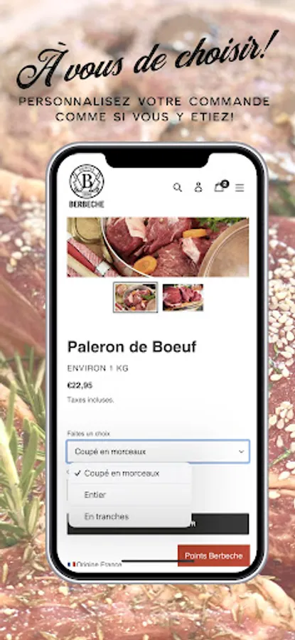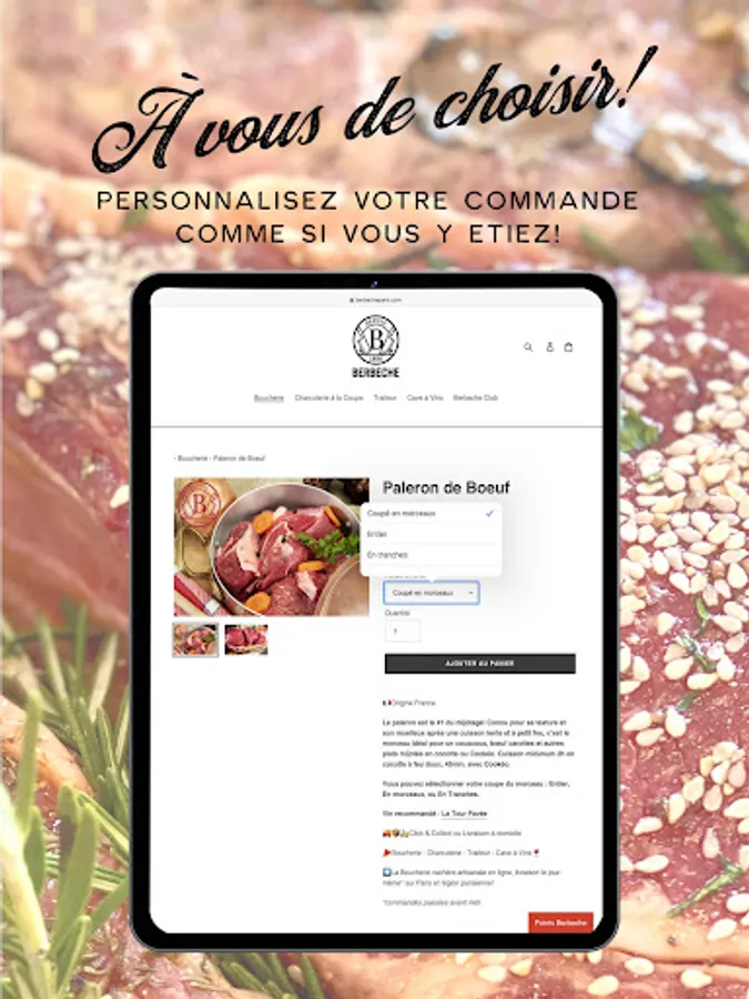 Here you have the possibility to choose the cut of your meat, your charcuterie, or the desired temperature of your bottle of rosé! You can also write a note to the butchers so that you are 100% satisfied with each order, because each piece is cut especially for you!
