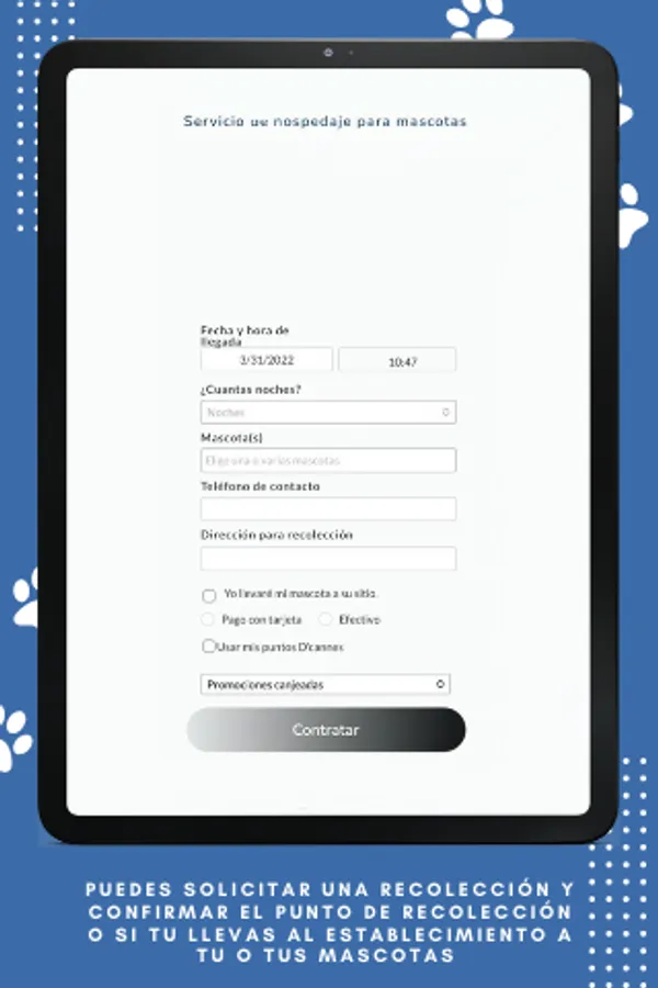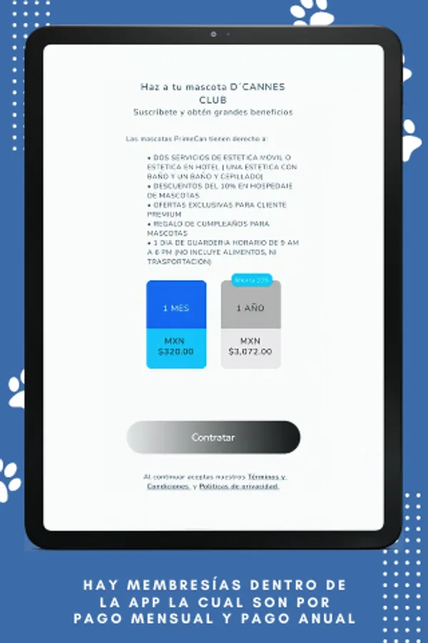 D' CANNES PETS HOTEL is a Mexican company dedicated to pet services, among our services you will find HOTEL FOR PETS, CANINE AND FELINE AESTHETICS, NURSERY AND TRANSPORTATION FOR PETS. With our new APP it will help you by facilitating the management of appointments and hotels for your pet, by downloading it you will receive countless promotions and special discounts for our subscribers.