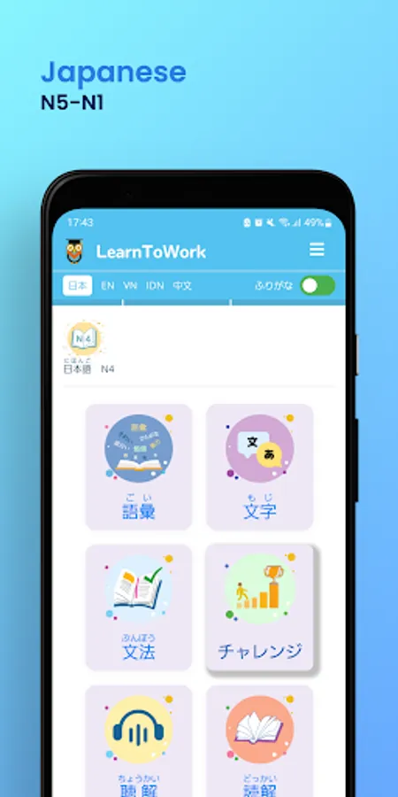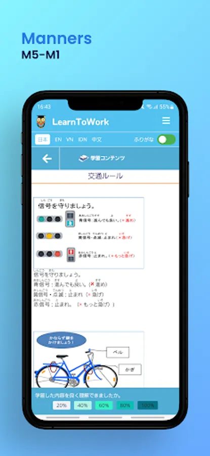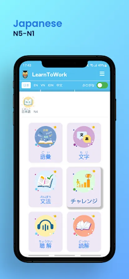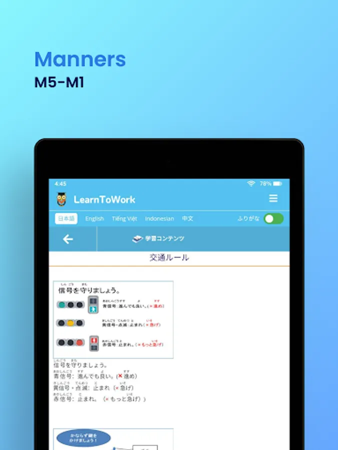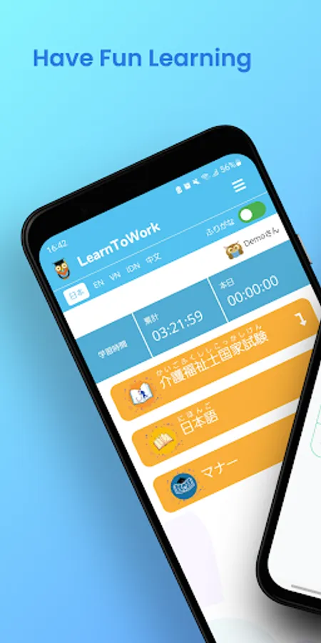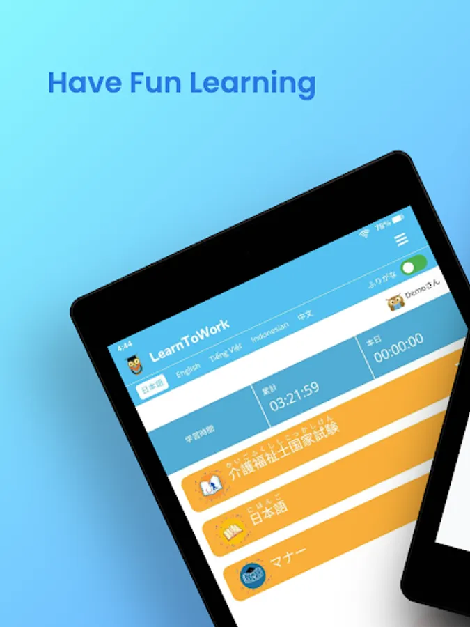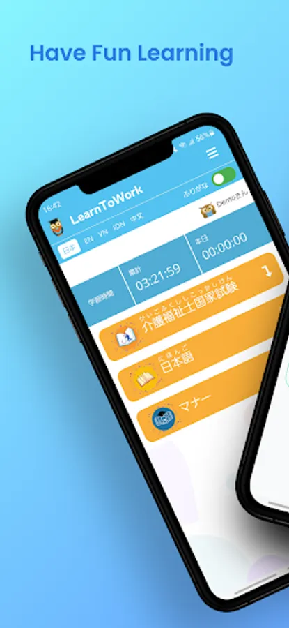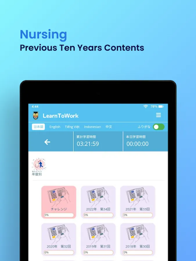 日本語能力の向上、マナーの養成、そして介護福祉士国家試験のサポートを目的としたアプリ
