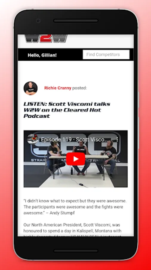 “I created this app so that past, present and future Warriors could stay connected to the Wimp 2 Warrior family, 24/7. I want them to stay motivated through weekly MMA workouts, and inspired through reading, listening to and watching content that proves how W2W really is the ultimate human transformation.”