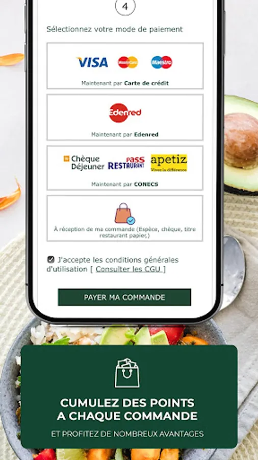 By ordering through the application, € 1 spent = 1 point accumulated on your loyalty kitty.