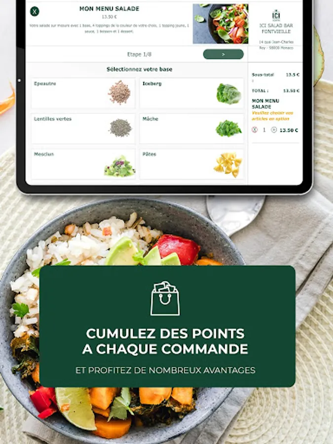 With the app here, ordering a salad has never been easier! In a few clicks, order your favorite salad, avoid the queue and collect points.