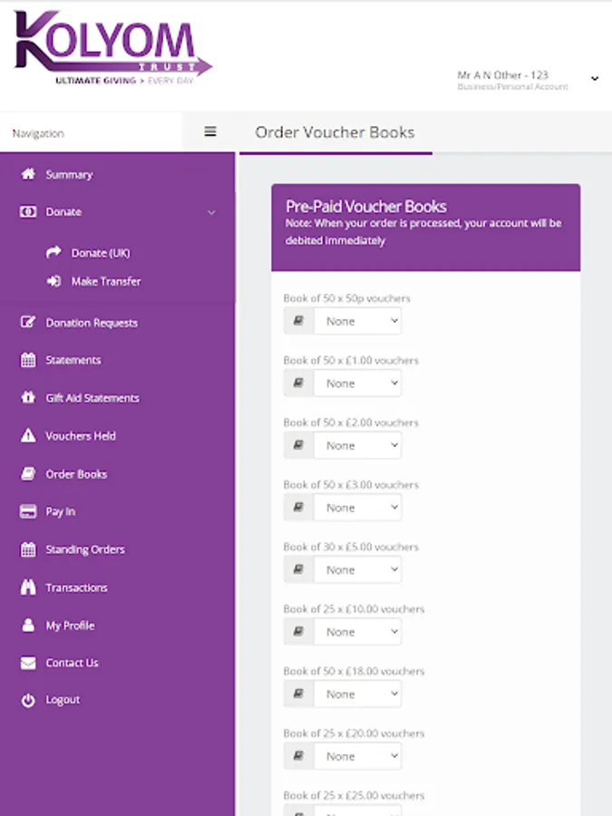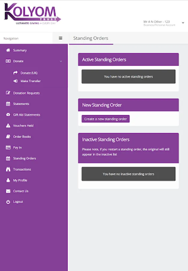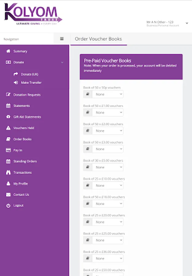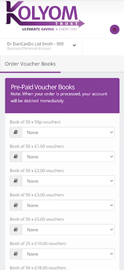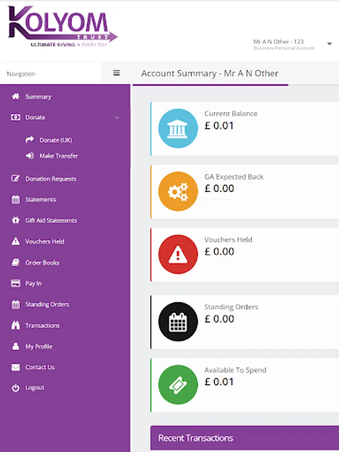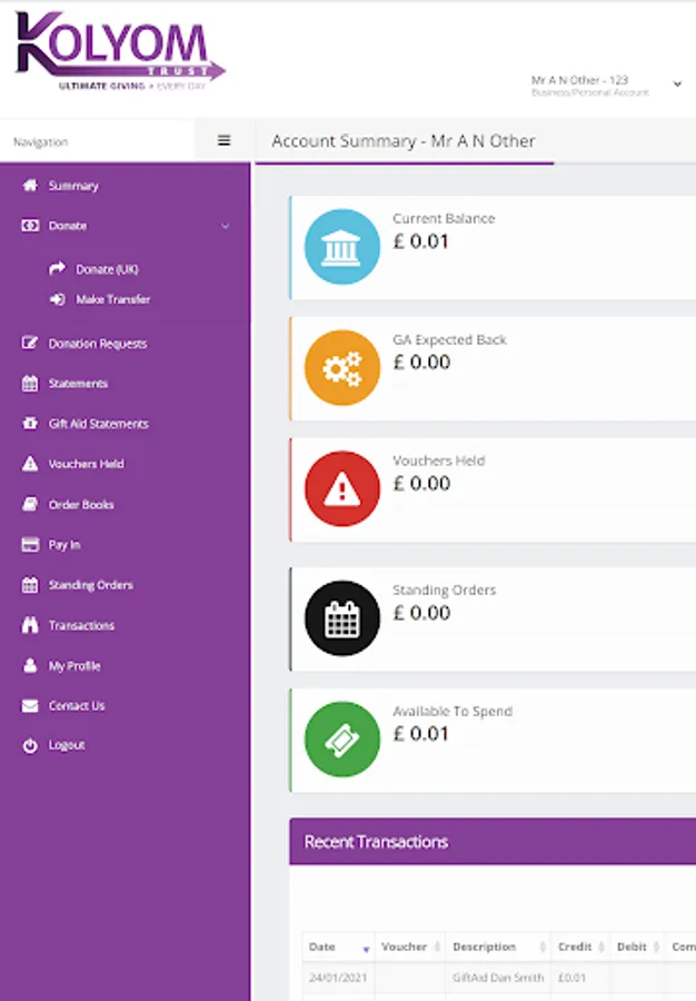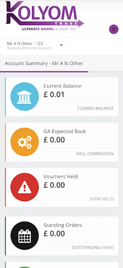 Easily manage your KolYomTrust charity account via an app.