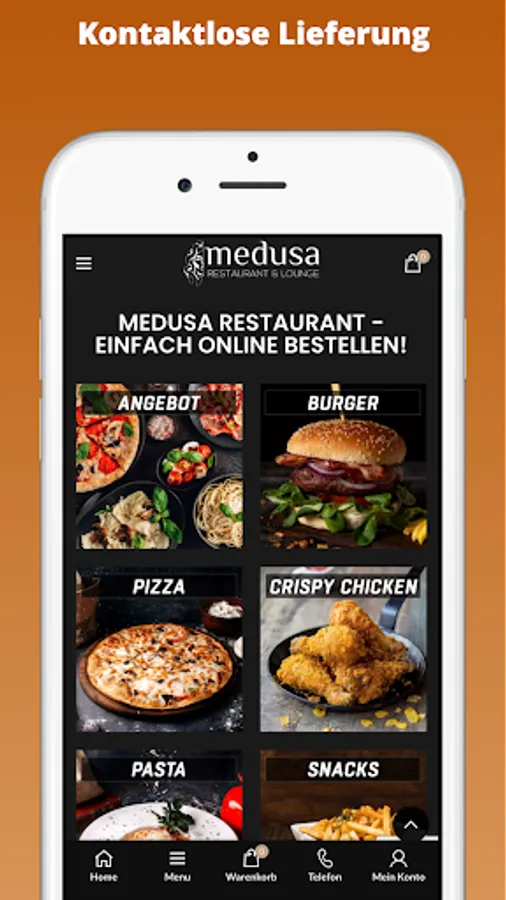 Medusa Restaurant now also delivers to your home. Order Italian pizza, pasta, salads, drinks and desserts conveniently and easily online. Now simply order food online via web or app. Choose your favorite food, pay easily & securely and the food will be delivered! Simply order food and have it delivered for free! Pay cash or credit card. Great offers. Excellent service. Fast delivery.