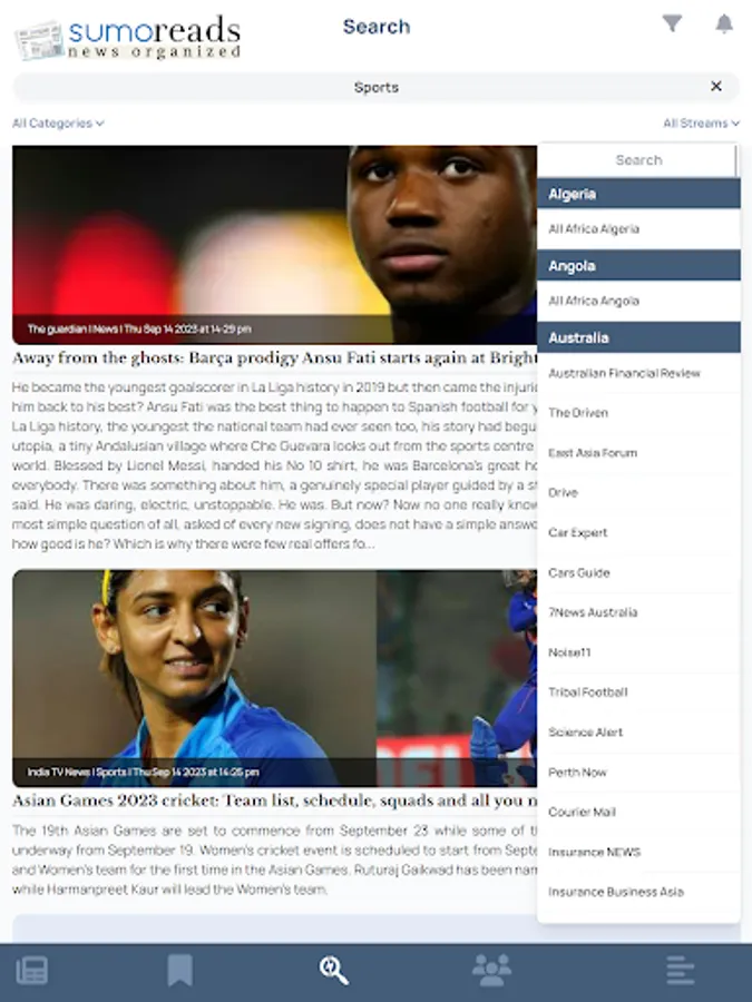 Empower your news experience with Sumo Reads' Custom Feeds. Choose categories that match your passions – sports, health, finance, travel, and more. Curate your news feed effortlessly, prioritizing stories that matter to you.