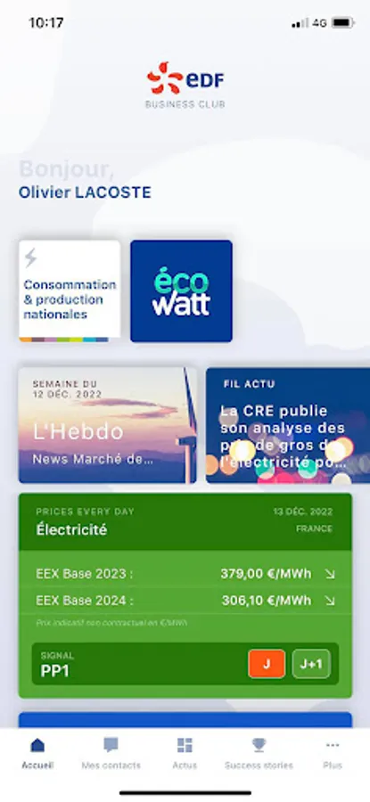 With the "EDF Business Club" app, you (Major Accounts and Major Customers) are connected to the energy markets!