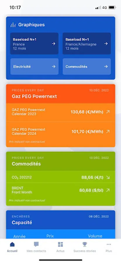 · consult the associated graphs (history of 36 months) with pre-saved favorites (Calendar Elec France N+1 & France/Germany N+1)