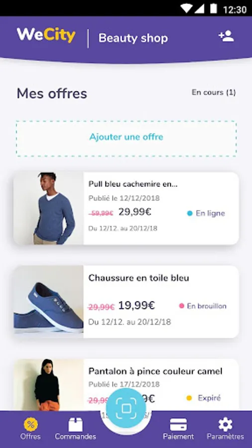 This manager is dedicated to professionals. It allows them to create unlimited offers to the WeCity community. The WeCityPro app allows professional member partners to manage their operations directly from their smartphone.