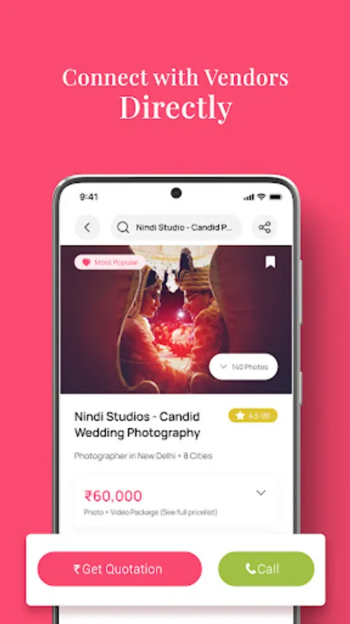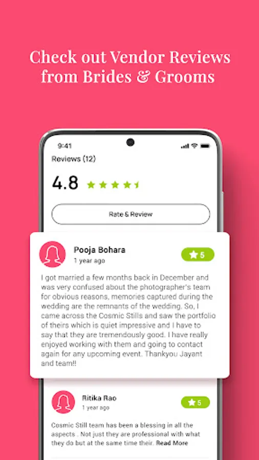 On this app, you can not only search for wedding vendors but also check their prices, photos of their work & the services they provide along with verified reviews. It’s the best way to get a clear understanding of the vendor & find the perfect vendor for your wedding.