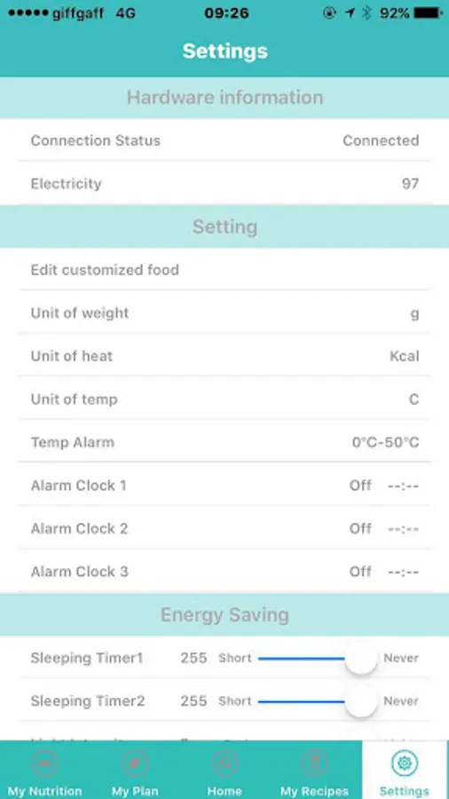 eCoaster can customize the eCoaster scale settings, such as weight units, temperature units, clock alarm and temperature alarm.