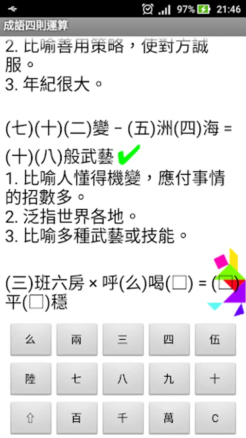 Idiom four operations is a combination of four mathematical operations idiom learning games education through fun way to learn about numbers and idioms, as well as four practice simple mathematical operations.