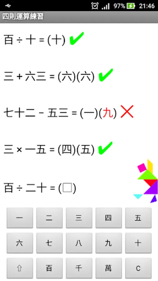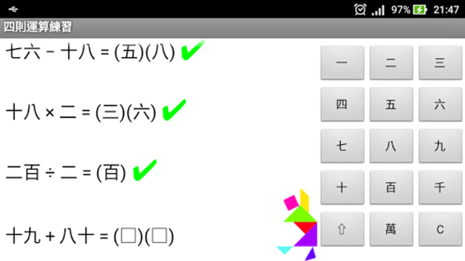 * Four arithmetic exercise: Exercise four mathematical operations without pressure.