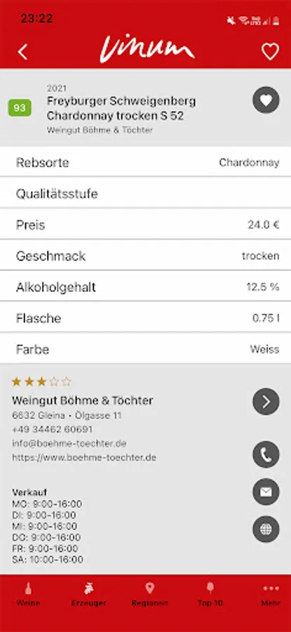 The VINUM wine guide app has been optimized and expanded for the 2023 edition. The current data package contains information about