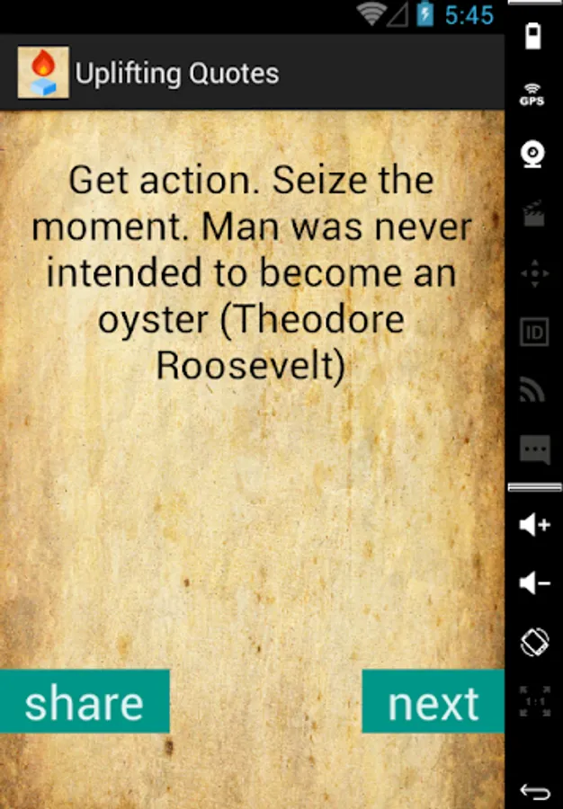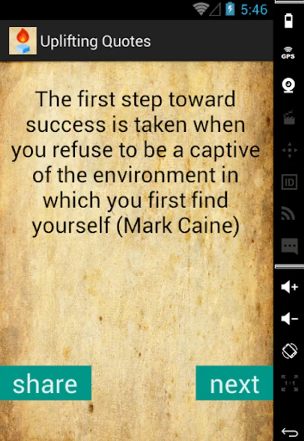 This Uplifting Quotes app contains hundreds of motivational and inspirational quotes. It will help you raise from your knees during hard times, look at the problem from the bright side and see the divine ray of happiness.