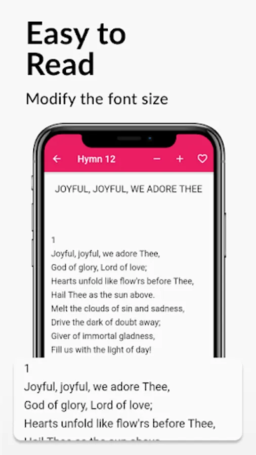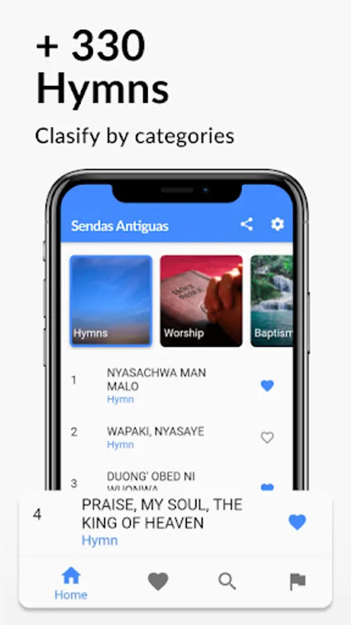 The Hymnal application contains more than 360 hymns and with the following classification: