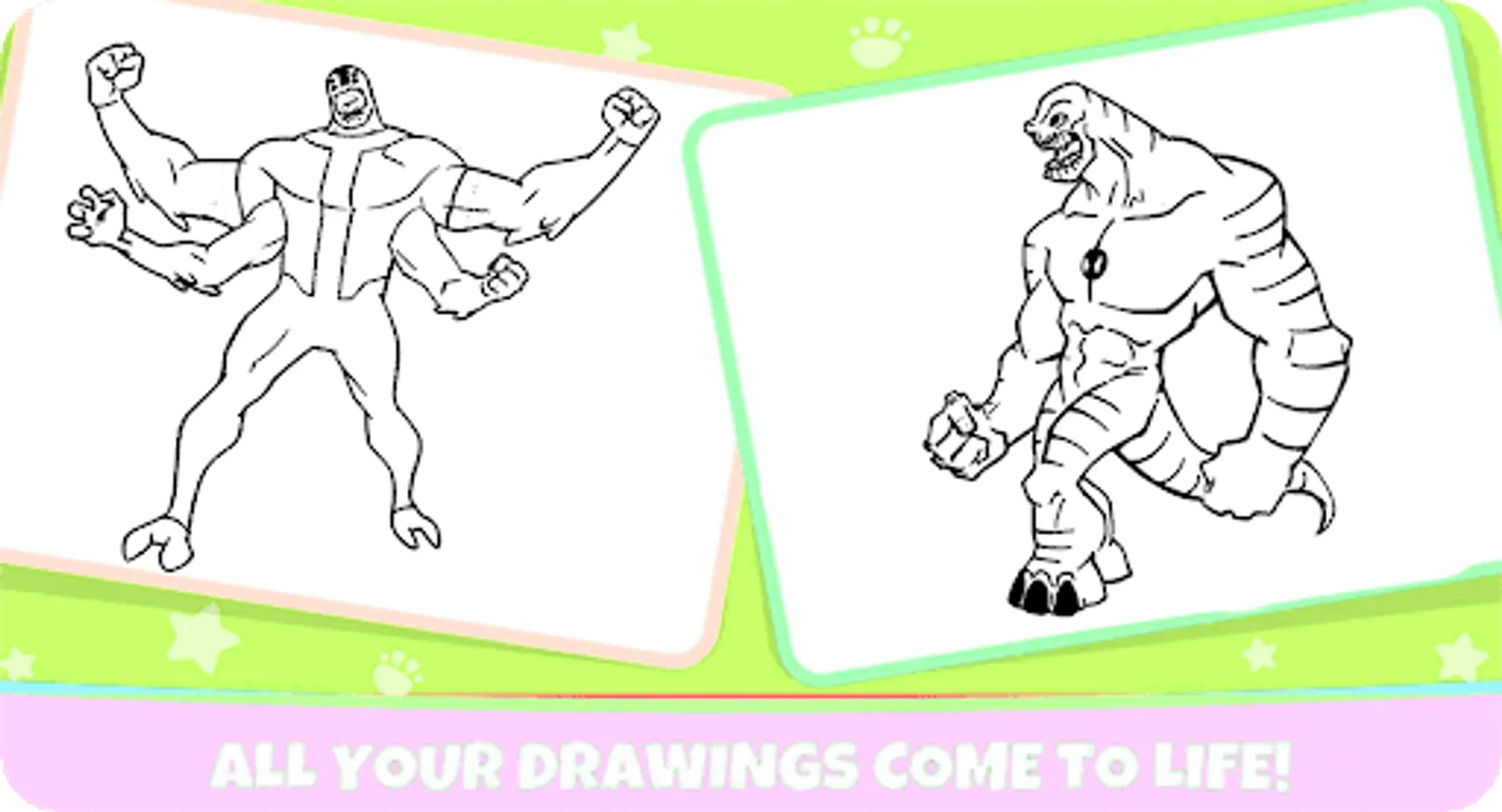 More than 10 drawing pages to color and decorate your favorite Ben Ten aliens cartoon.