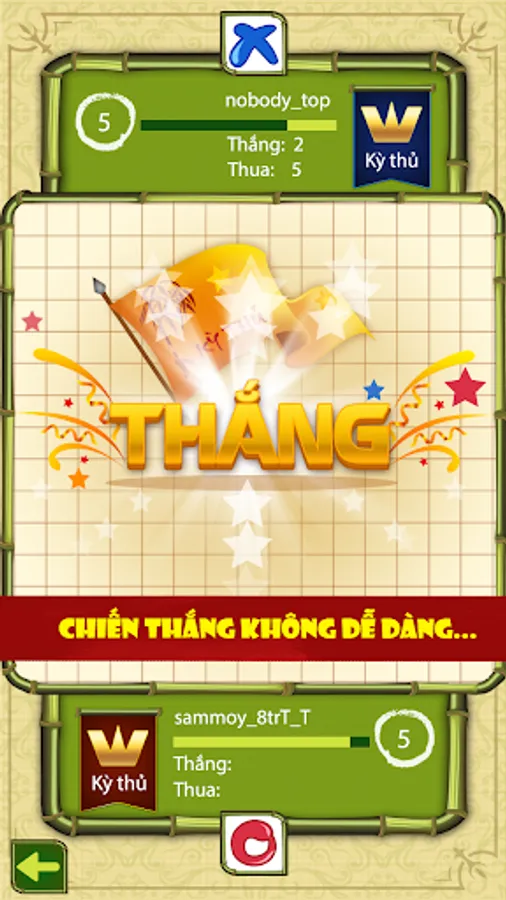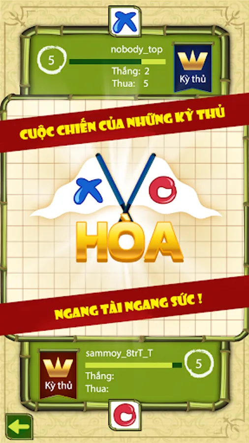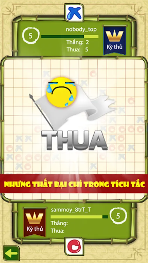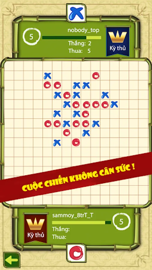 - Mỗi lượt bạn tích vào 1 ô trống sao cho được 5 ô liền nhau theo đường thẳng là thắng.