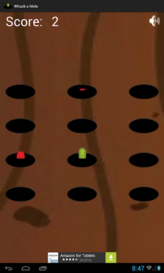 Adaptation of the classic game "Whack a Moles" of the Arcade game, where you with a hammer whack to the moles, where the moles coming out of the holes.