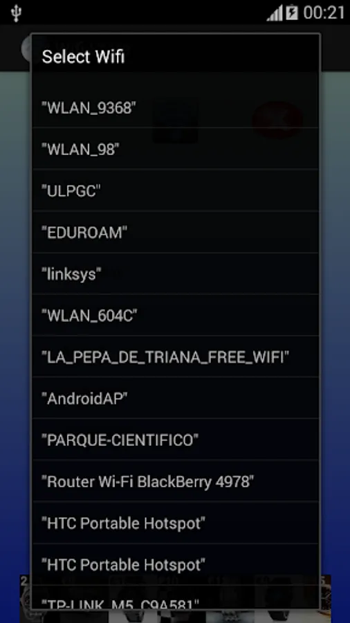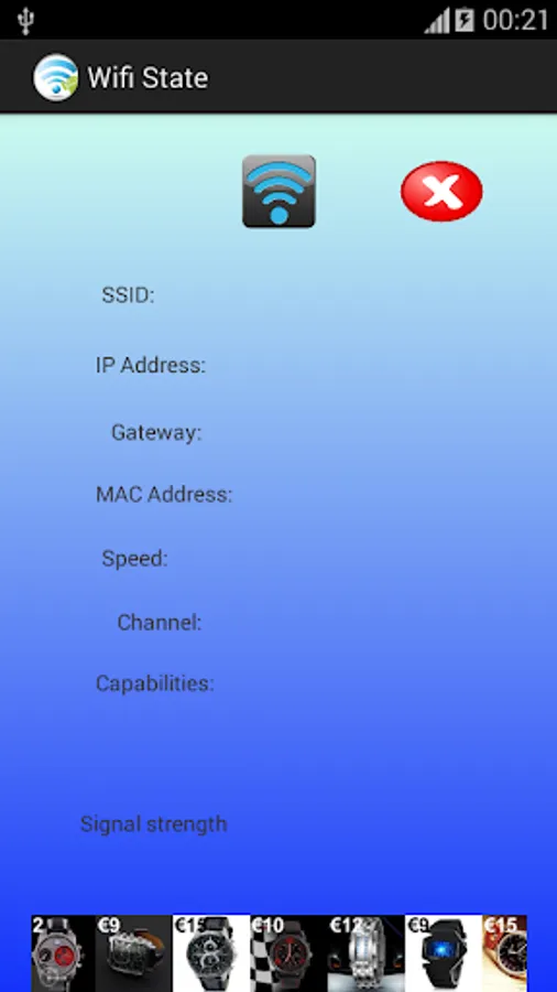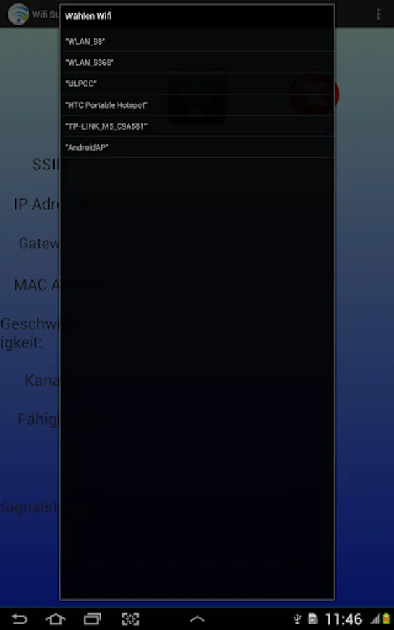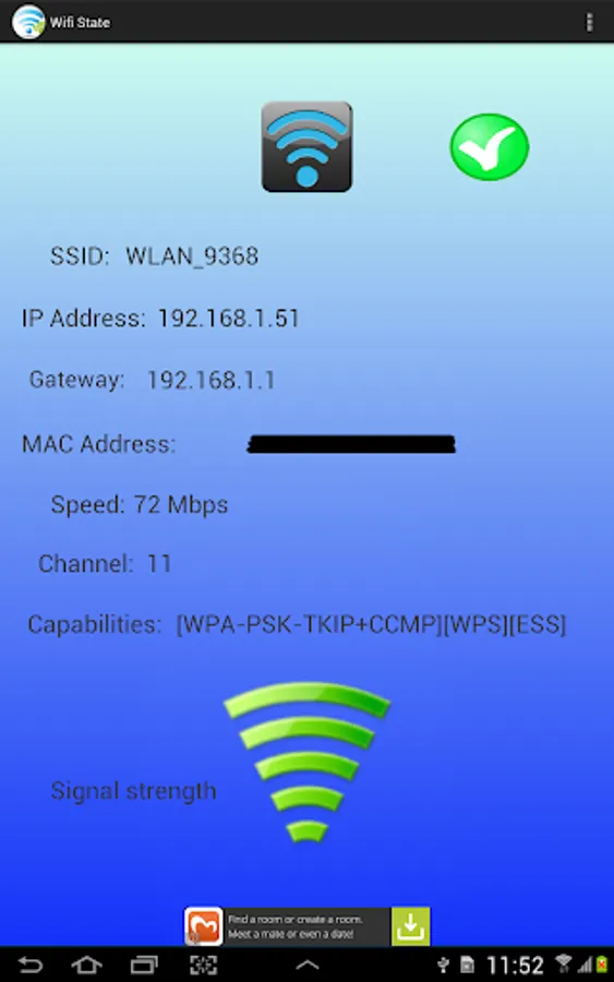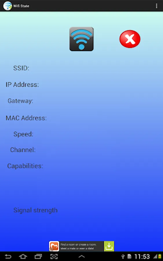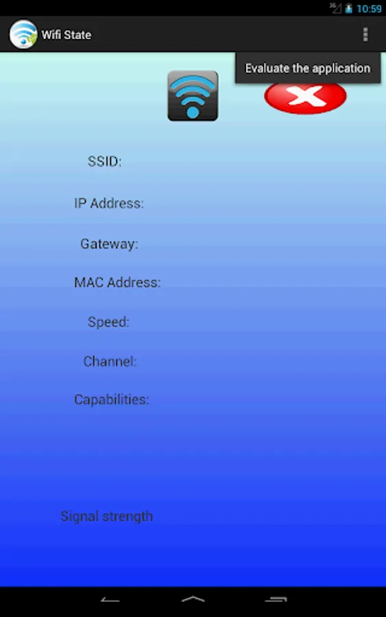 Simple application to check the status of WiFi to which we are connected. It has a button (Select button) to select the WiFi you want to connect and then the various parameters are displayed WiFI. These parameters can be updated in real time.