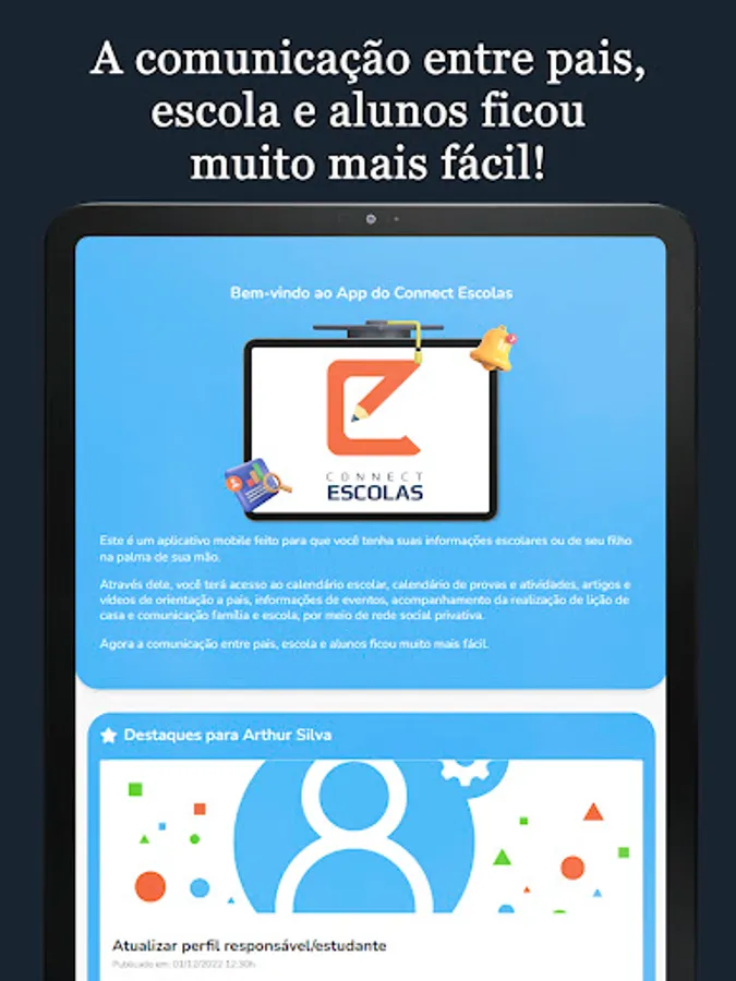 Through it, you will have access to the school calendar, calendar of tests and activities, parenting articles and videos, event information, monitoring of homework and family and school communication through a private social network.