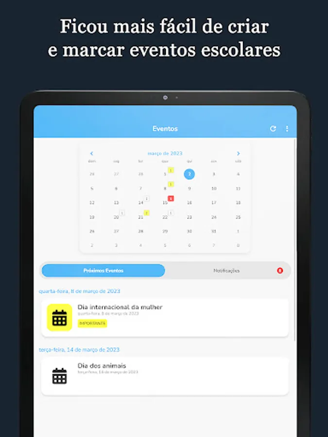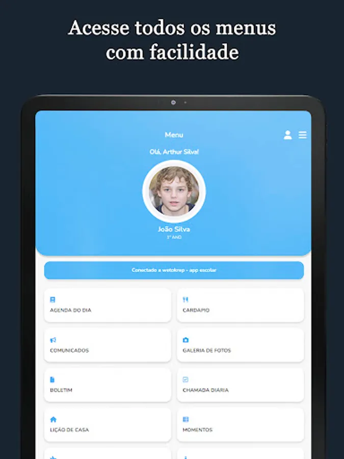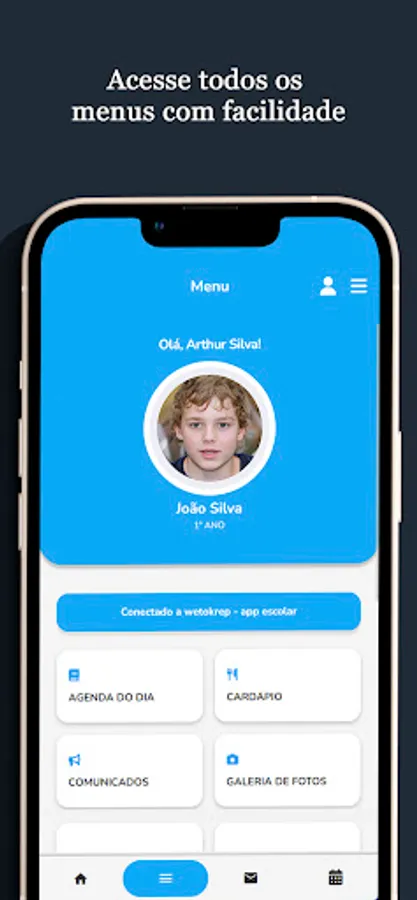 Through it, you will have access to the school calendar, calendar of tests and activities, articles and videos of guidance to parents, information of events, monitoring of homework and communication between family and school, through a private social network.