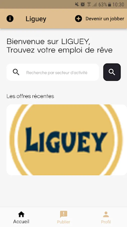Liguey lets you post jobs or search for jobs in different sectors. Its geolocation-based search function lets you see all jobs in the geographical area where you are located.
