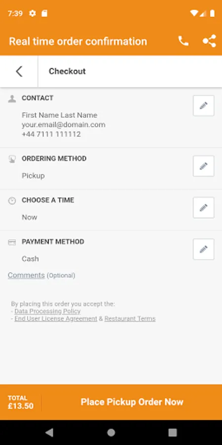 7. Get real time order confirmation instantly