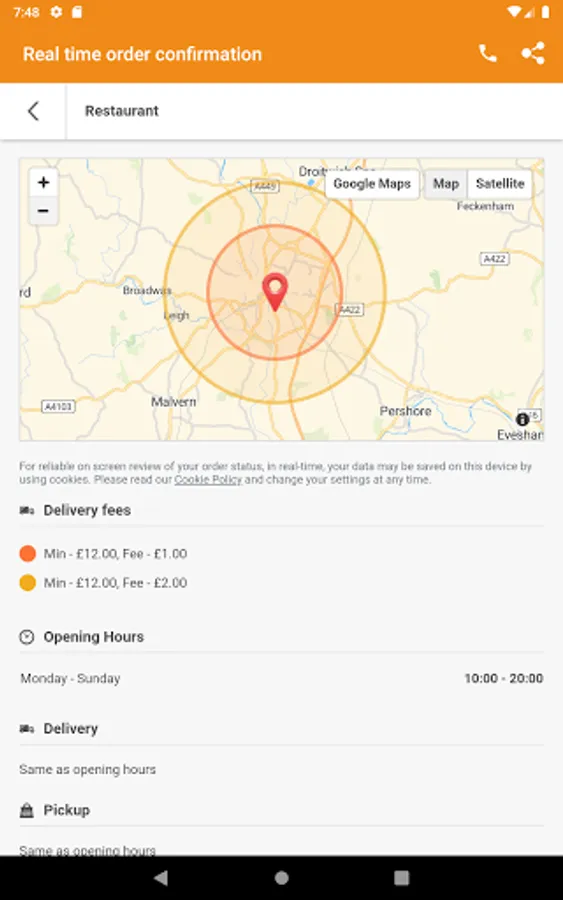 6. Get instant delivery time or collection time on screen once you submit your order.