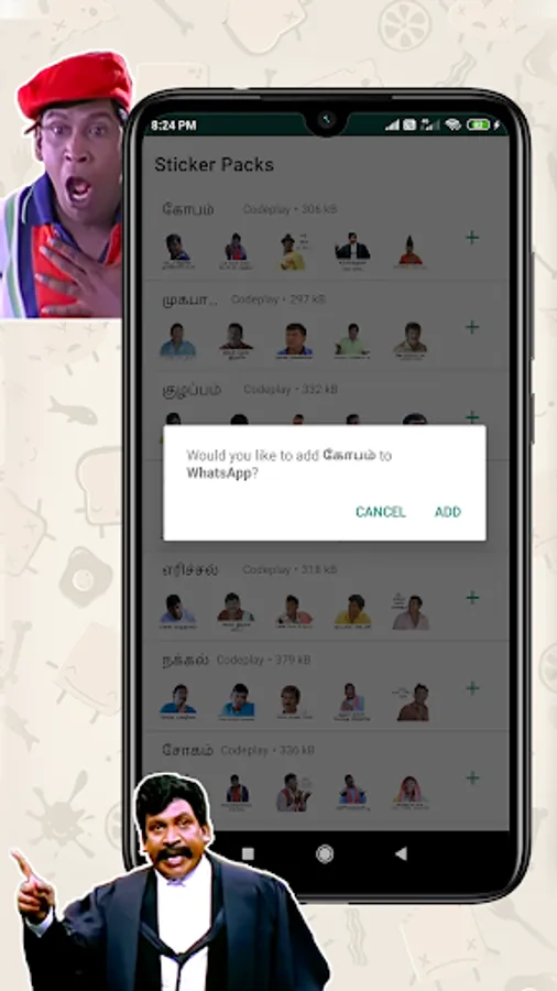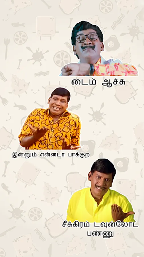 Tamil vadivelu sticker app has more than 200+ Tamil sticker pack with 10 categories.