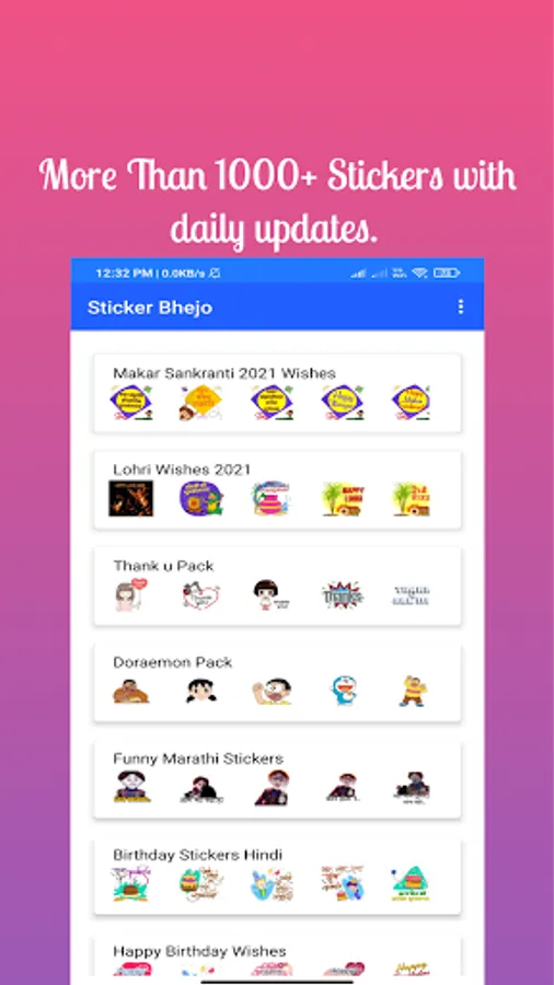 Hindi, Marathi, text etc. this app has more than 300+ stickers in different category packs.