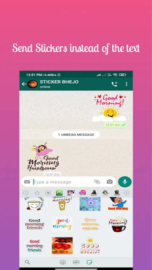 Sticker Bhejo app helps you to express your emotions or make fun with your friends and family, Send stickers on WhatsApp instead of emoji giving you a different experience, make your chat more funny and interesting. This app contains stickers like series, movies, trending, viral, and much more. this app small in size and light. Please rate and share the app with your family and friends.