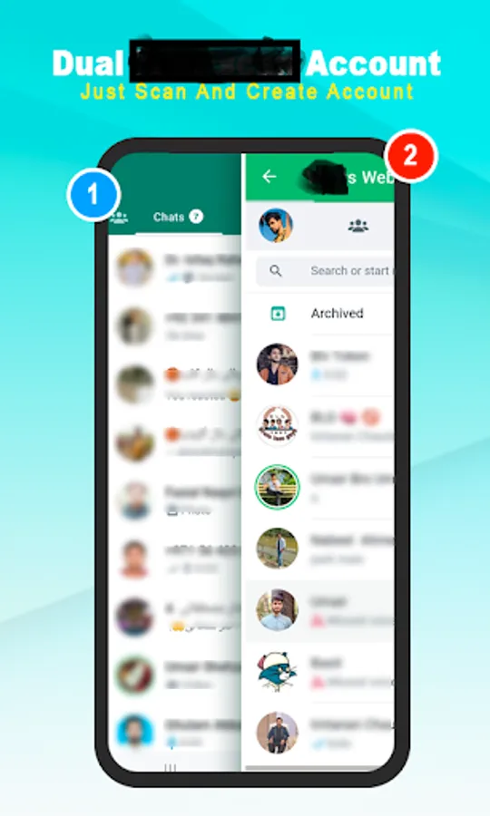 You can open two different WA accounts on a single device which is impossible without using our WA Web Scan QR Scanner App Cloner. You just have to scan the QR of another person's WA web scan and then you can open his/her account on WA Web Scanner. This feature is popular with the name of WApp web scan.