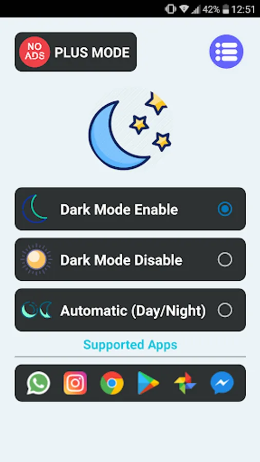 Dark Mode apps helps to active Android dark mode on device that do not provide in your phone system settings.