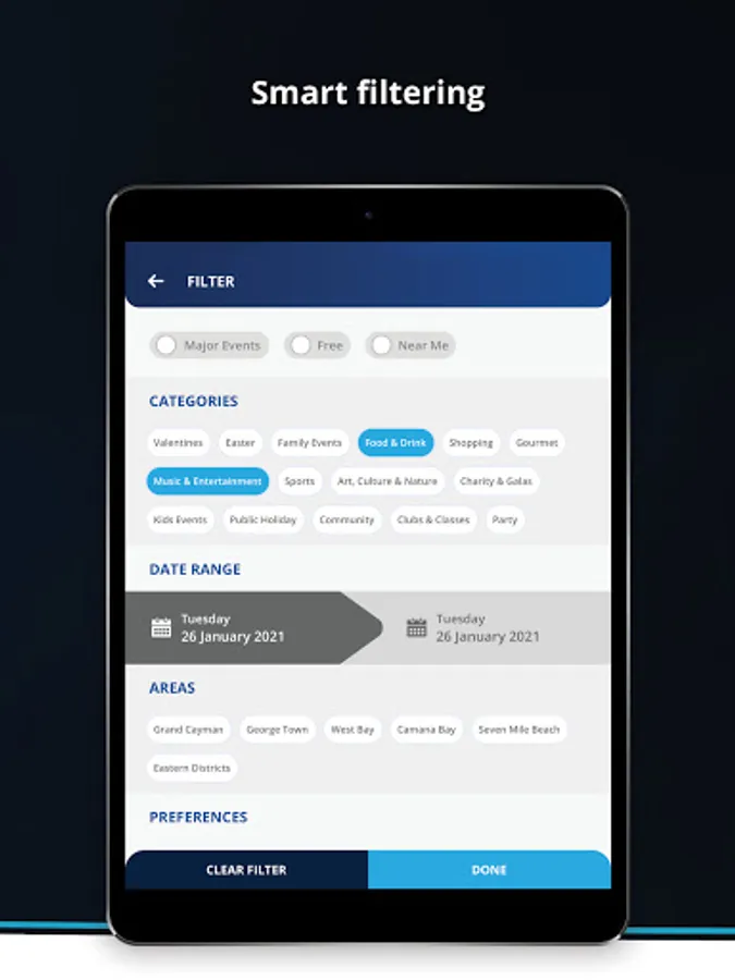 In addition to what is going on, the app also provides links to current relevant information sources, so you are always informed about what is happening in Cayman.