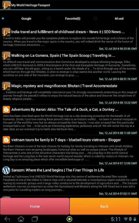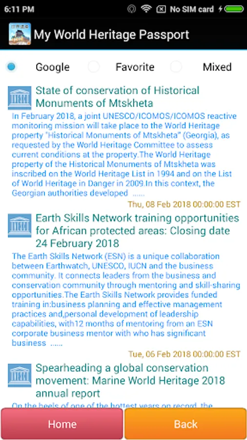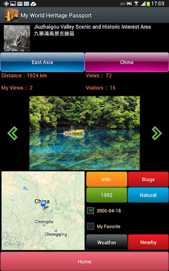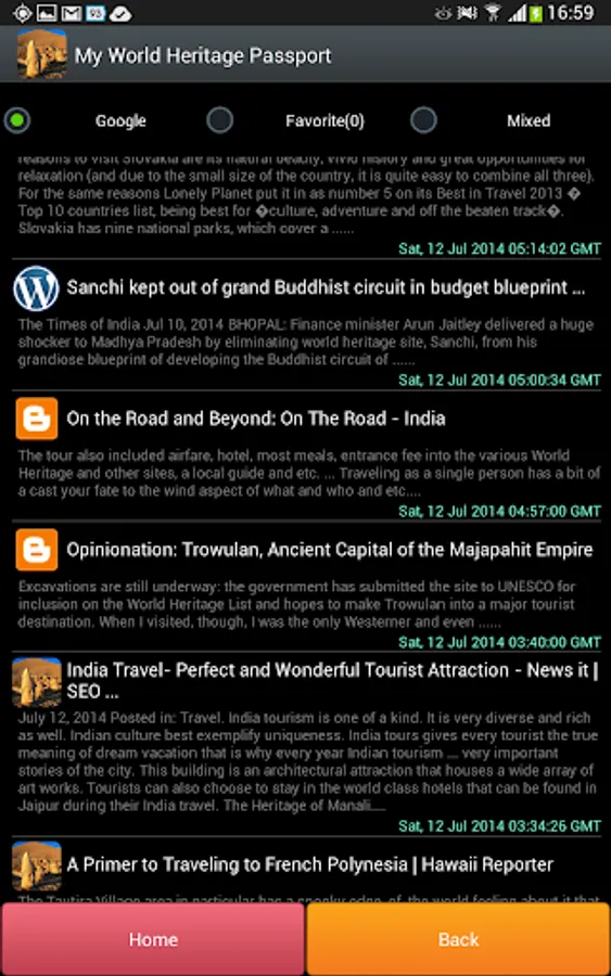 In this application, you can find the latest images, blog posts, weather forecasts of every world heritage sites.