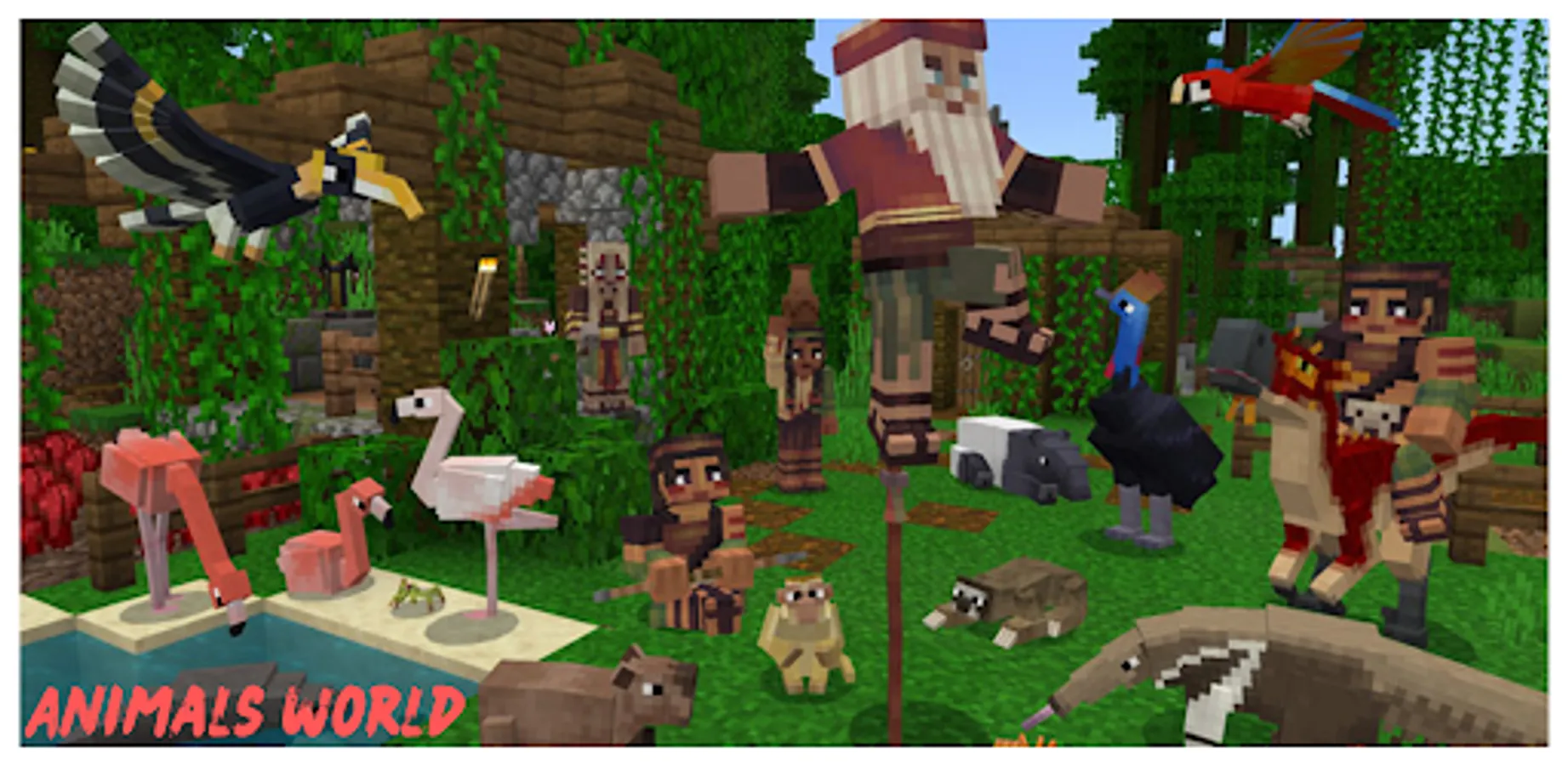 This animal mod and addon adds a new model and texture for each of the animals– which will function as normal. Now includes horses, parrot , an optional cockatoo, wolves, pandas, spiders, bees, llamas, both fox variants, chickens, cows, mooshrooms, cats, rabbits, saddled pigs, and sheep.