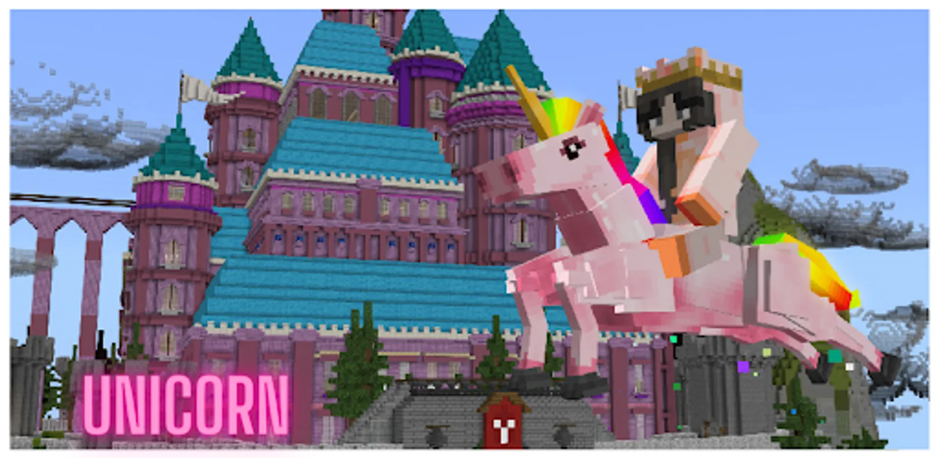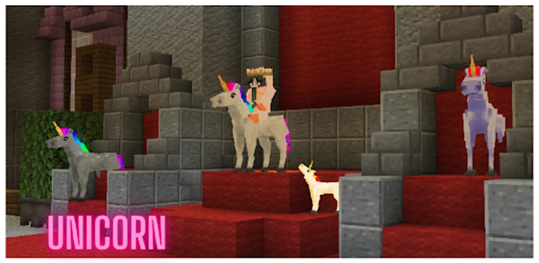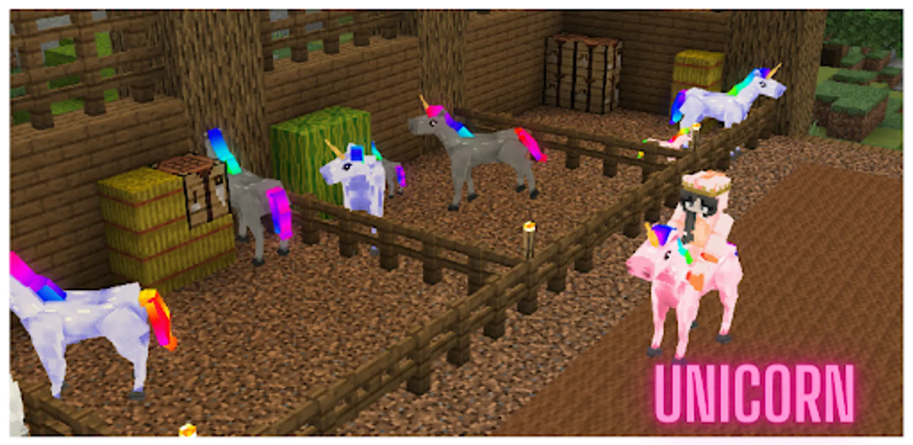 The Fantasy Island + Unicorn Mod will add several new mobs: unicorns, alacorns and pegasuses. Unicorns are horses with one horn of a wolf. Alacores and Pegasus are winged horses on Fantasy Island. They can fly. They can be of different colors, be useful, do different things. Generally very cute creatures.