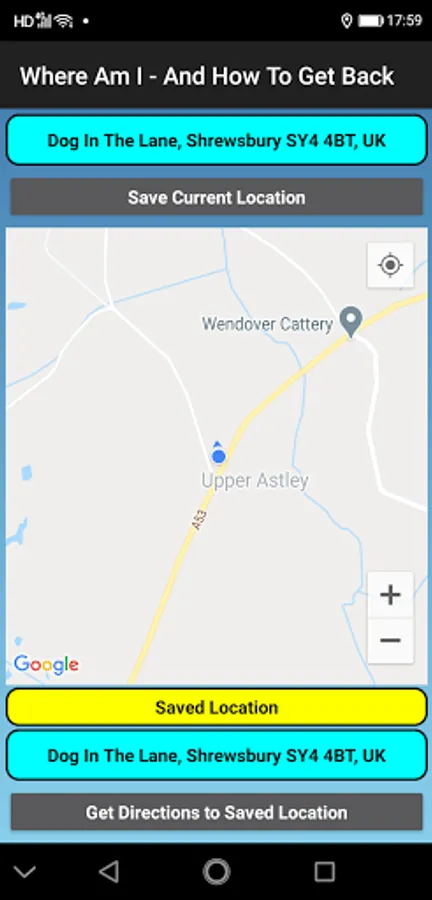 A simple Where am I application, when activated the program shows your current location, it then gives you the ability to store the details of the location, including Latitude and Longitude. If the user as Google Maps installed on the device it then allows you to navigate back to the stored location.