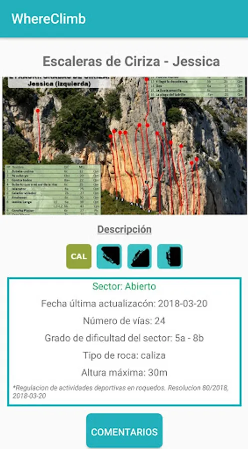 - Information regarding each sector such as the type of rock, difficulty, number of roads and even if it is currently closed or open.